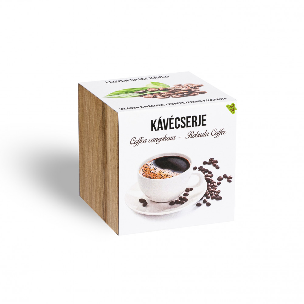 Kávé cserje növényem fa kockában