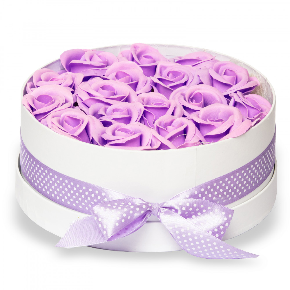 Szappanrózsa box, fehér rózsadoboz - lila - M