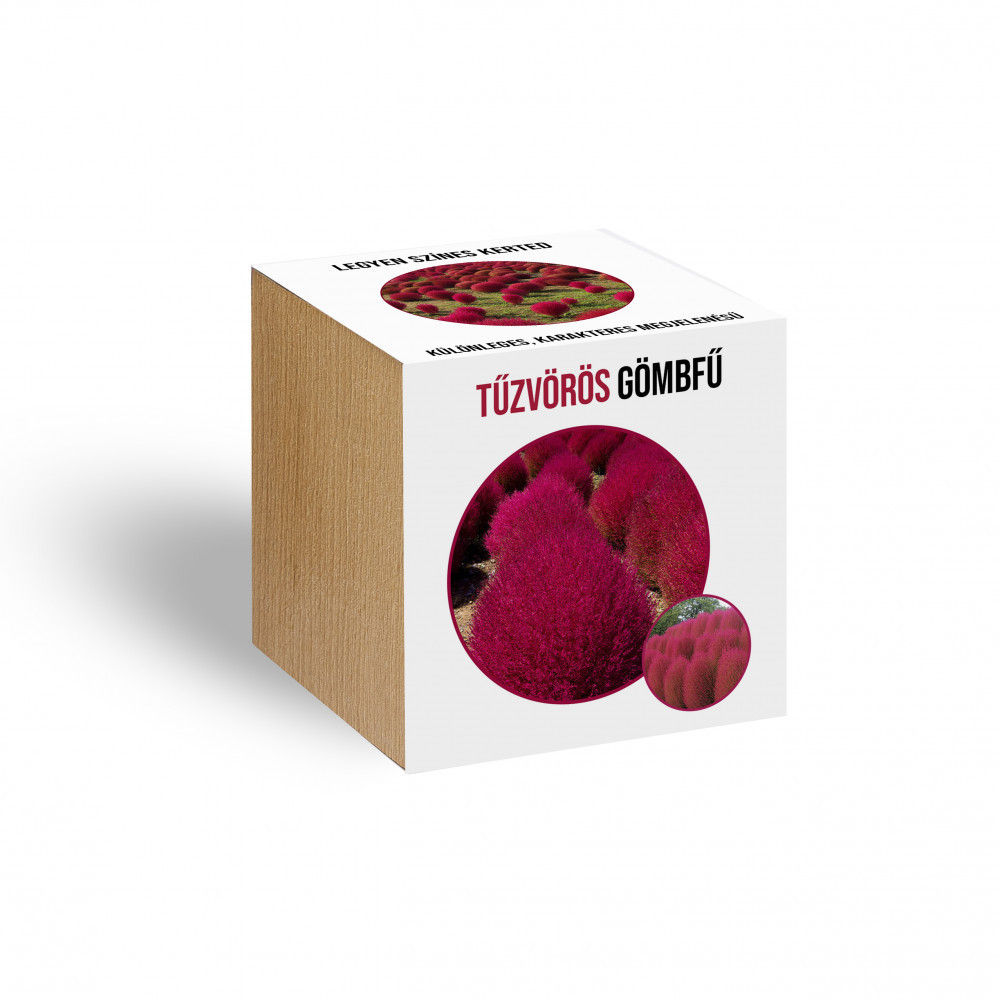 A szett két nevelésre alkalmas!A csomag tartalma: - 1 db fa kocka kaspó - 2 db tőzegkapszula, mely 2 nevelésre alkalmas - 4-5 db gömbfű magA kocka anyaga: Bükk A kocka mérete: 7.5 cm X 7.5 cm X 7.5 cm Lehetőleg tartsd a növényt fényes, meleg helyen és öntözd rendszeresen alulról, hogy ne száradjon ki az ültetőközeg. A tőzegkapszulát a növénnyel együtt ültetheted át, a talajban teljesen lebomlik. Kérlek, ügyelj a gondozási útmutatóban leírtak betartására, hiszen a magok csak a megfelelő körülmények biztosítása mellett csíráznak sikeresen.Gondozási útmutató: Öntsünk vizet a Kocka mélyedésébe, majd helyezzük bele a tőzegkapszulát úgy, hogy a lukas oldala legyen felfelé. Addig pótoljuk alá a vizet, amíg teljesen meg nem dagad. Bontsuk ki a magokat tartalmazó tasakot, majd helyezzünk egy, vagy legfeljebb két magot a tőzegkapszula mélyedésébe. Ezt követően csak arra kell ügyelnünk, hogy az ültetőközeg mindig nedves maradjon, és biztosítsuk a magoknak a megfelelő csírázási hőmérsékletet (20-25C). Csírázási idő: 1-2 hét. Miután a magok kikeltek, tartsuk a növényt világos helyen. Átültetése 4-6 leveles állapotban esedékes nagyobb cserépbe, tápdús talajba.