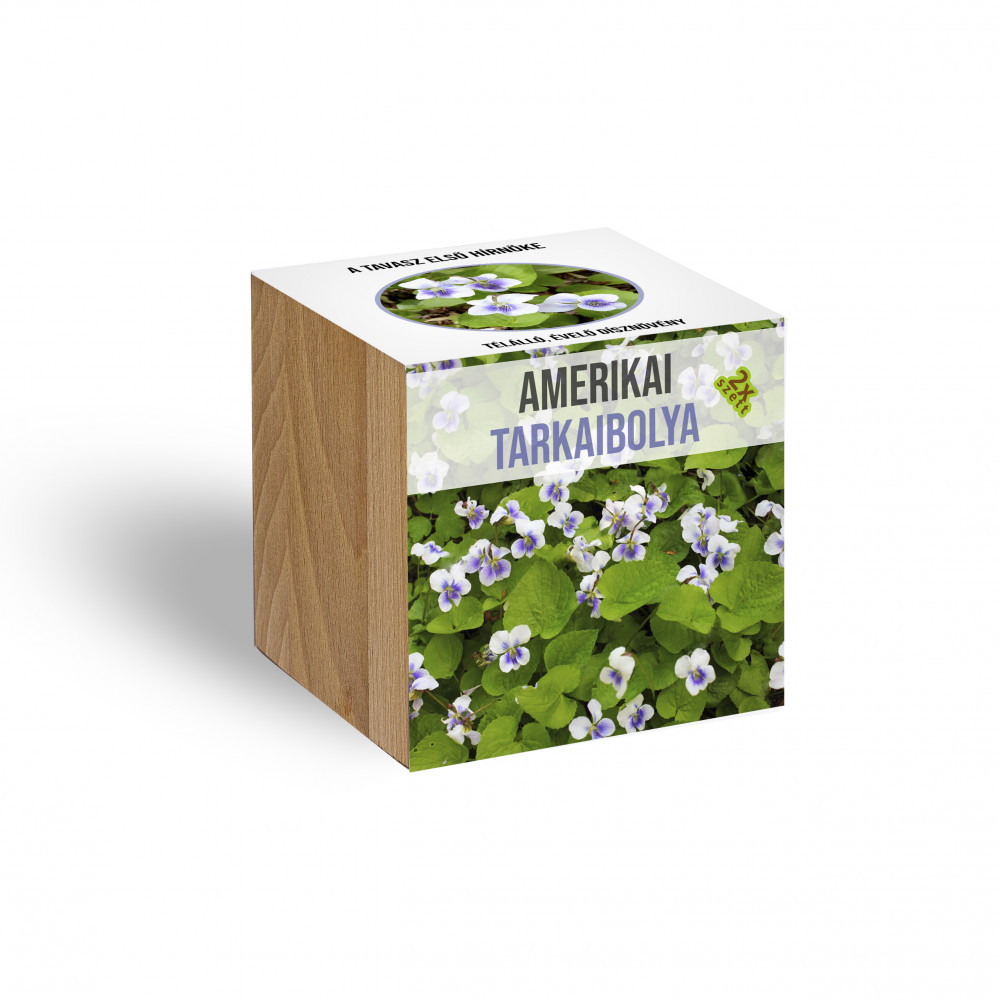 A szett két nevelésre alkalmas!A csomag tartalma: - 1 db fa kocka kaspó - 2 db tőzegkapszula, mely 2 nevelésre alkalmas - 4-5 db amerikai tarkaibolya magA kocka anyaga: Bükk A kocka mérete: 7.5 cm X 7.5 cm X 7.5 cm Lehetőleg tartsd a növényt fényes, meleg helyen és öntözd rendszeresen alulról, hogy ne száradjon ki az ültetőközeg. A tőzegkapszulát a növénnyel együtt ültetheted át, a talajban teljesen lebomlik. Kérlek, ügyelj a gondozási útmutatóban leírtak betartására, hiszen a gumók csak a megfelelő körülmények biztosítása mellett csíráznak ki sikeresen.Gondozási útmutató: Öntsünk vizet a kocka mélyedésébe, majd helyezzük bele a papírpoharat és a tőzegkapszulát úgy, hogy a lukas oldala legyen felfelé. Addig pótoljuk alá a vizet, amíg teljesen meg nem dagad. Bontsuk ki a magokat tartalmazó tasakot, majd helyezzünk egy, vagy legfeljebb két magot a tőzegkapszula mélyedésébe a magok vastagabb végével lefelé. Ezt követően csak arra kell ügyelnünk, hogy az ültetőközeg mindig nedves maradjon, és biztosítsuk a magoknak a megfelelő csírázási hőmérsékletet (18-25°C). Csírázási idő: 1-3 hét. Miután a magok kikeltek, tartsuk a növényt világos helyen. Átültetése 4-6 leveles állapotban esedékes nagyobb cserépbe, tápdús talajba.